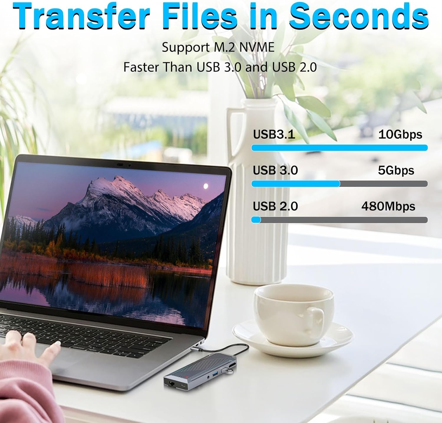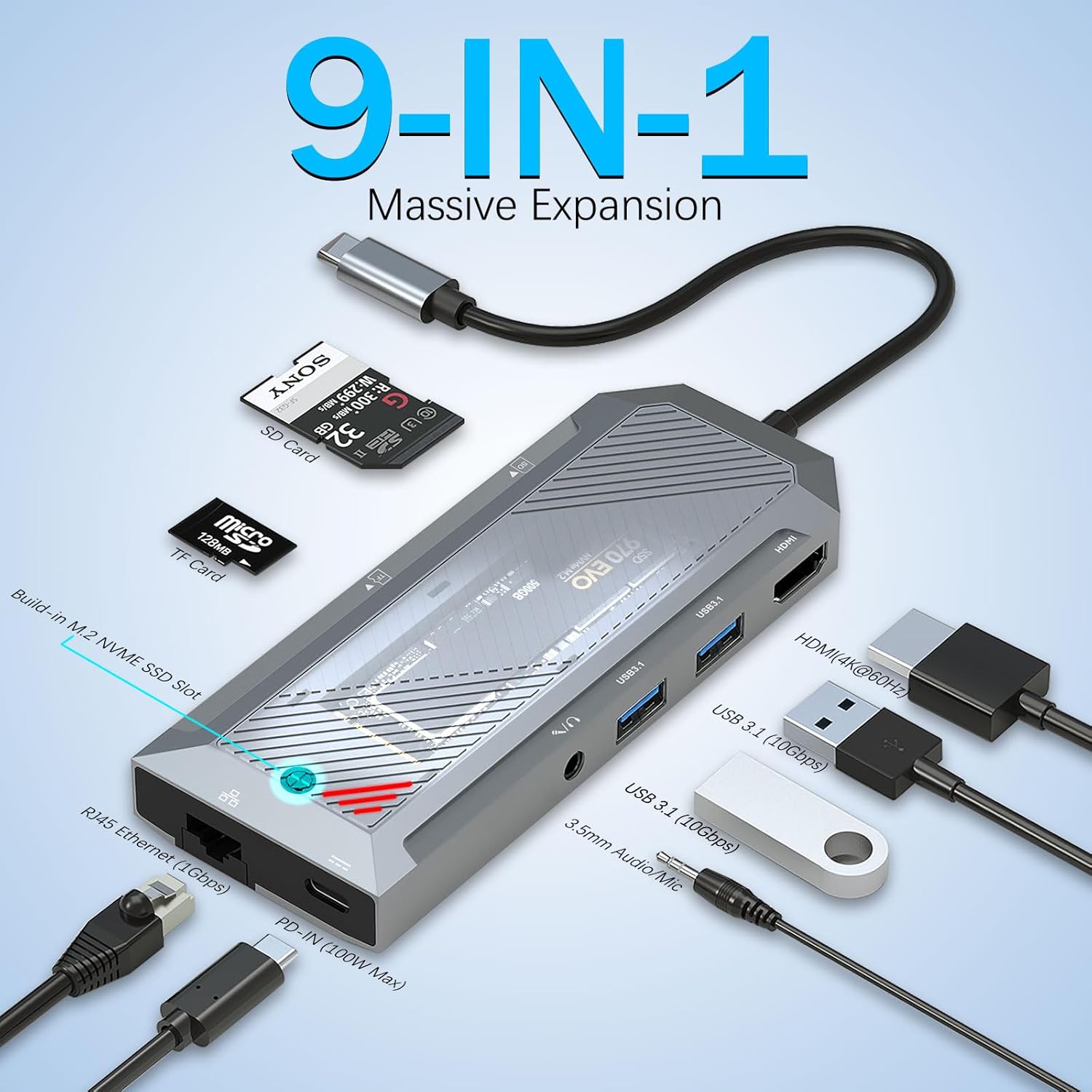Koncentrator USB-C 9 w 1 z obudową SSD do rozdzielacza HDMI M.2 NVMe 4K 60 Hz — najwyższa łączność i szybka rozbudowa pamięci masowej