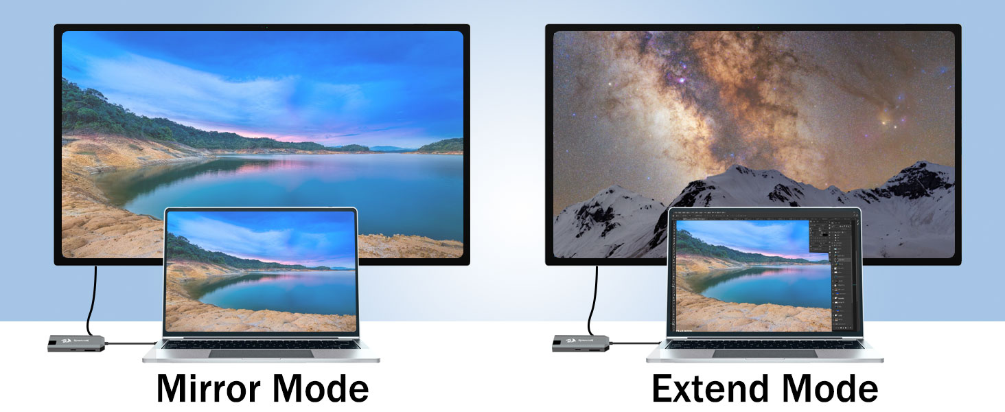 Użytkownicy mogą łatwo podłączyć swoje laptopy do zewnętrznych monitorów, telewizorów lub projektorów, aby uzyskać rozszerzoną przestrzeń roboczą lub wciągające wrażenia wizualne.
