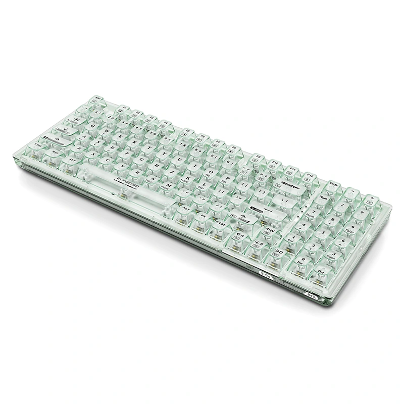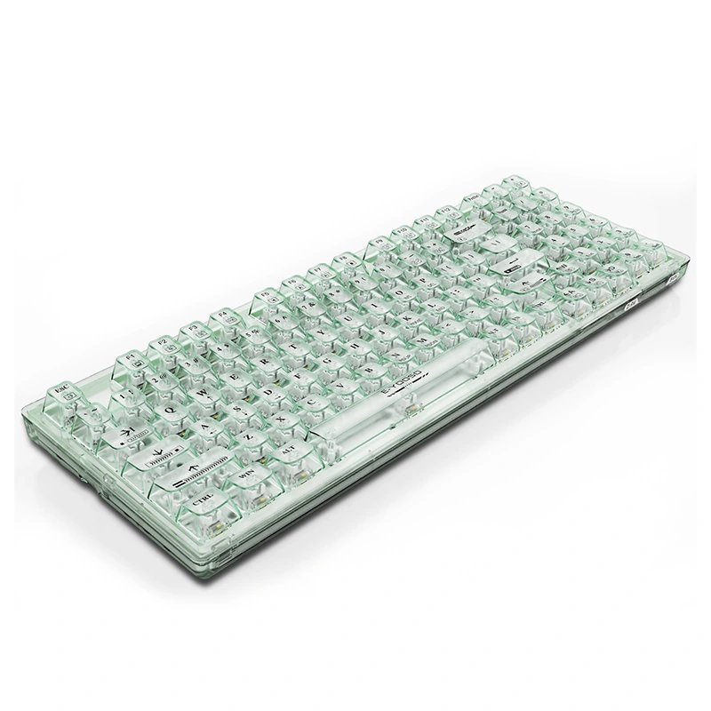 Mechaniczna klawiatura do gier HUO JI z 94 klawiszami. Posiada odłączany kabel USB typu C. Kompaktowa konstrukcja klawiatury z przezroczystymi nasadkami. Kolorowe podświetlanie RGB z boku i pojedynczą diodą LED. Klawiatura numeryczna i biały przełącznik, możesz go używać do gier i biura
