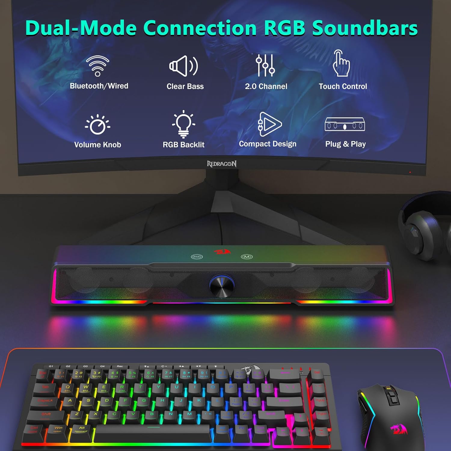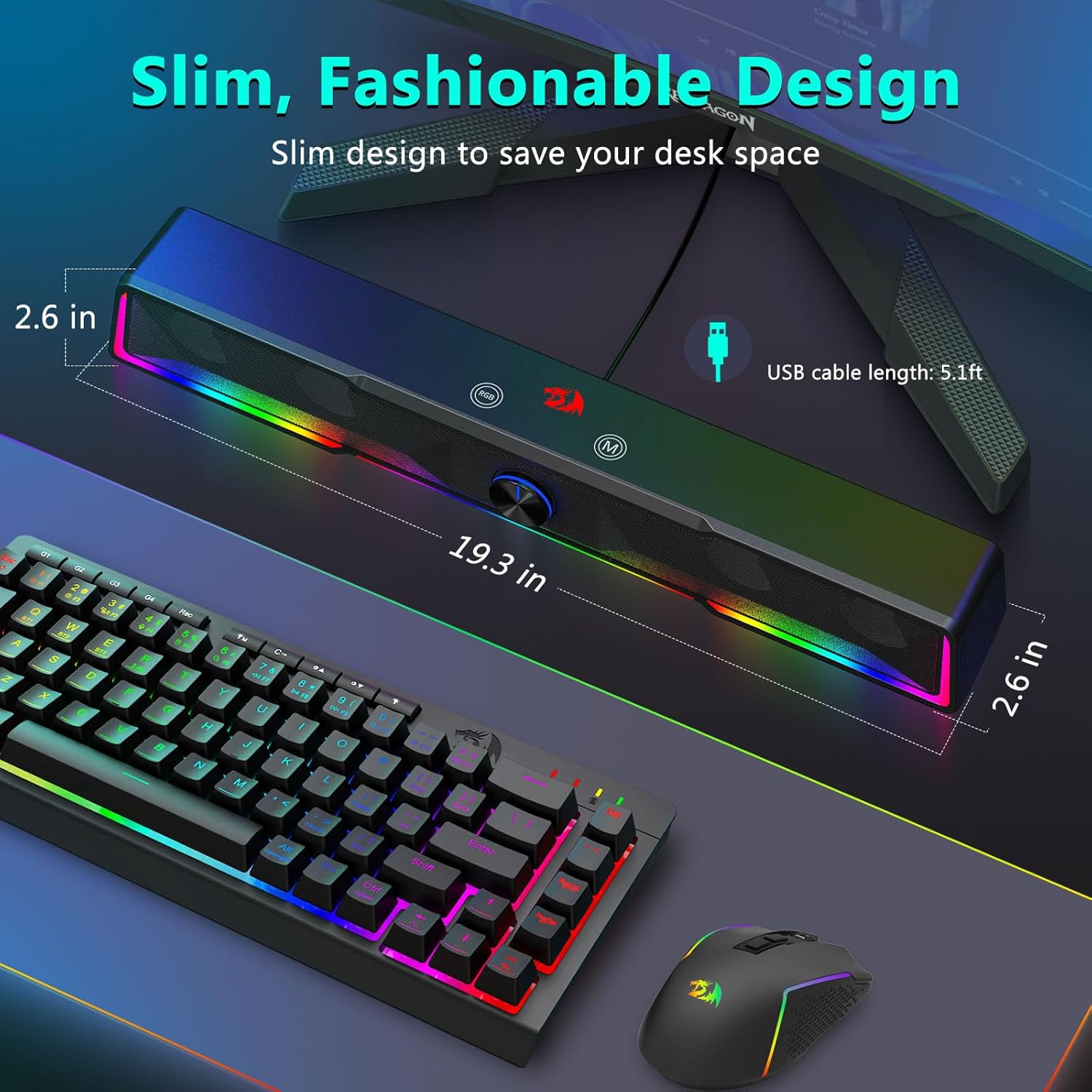 Kompaktowa konstrukcja przyjazna dla biurka Układ listwy dźwiękowej zmniejsza bałagan, jednocześnie zapewniając mocny dźwięk.
