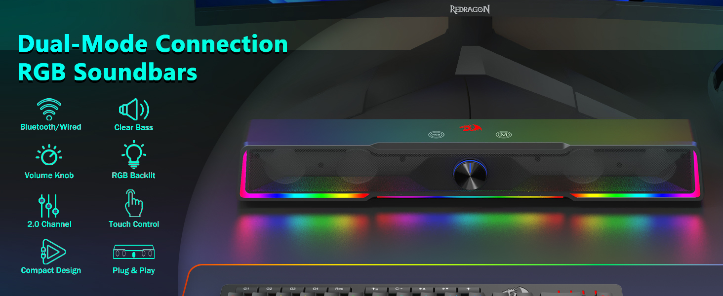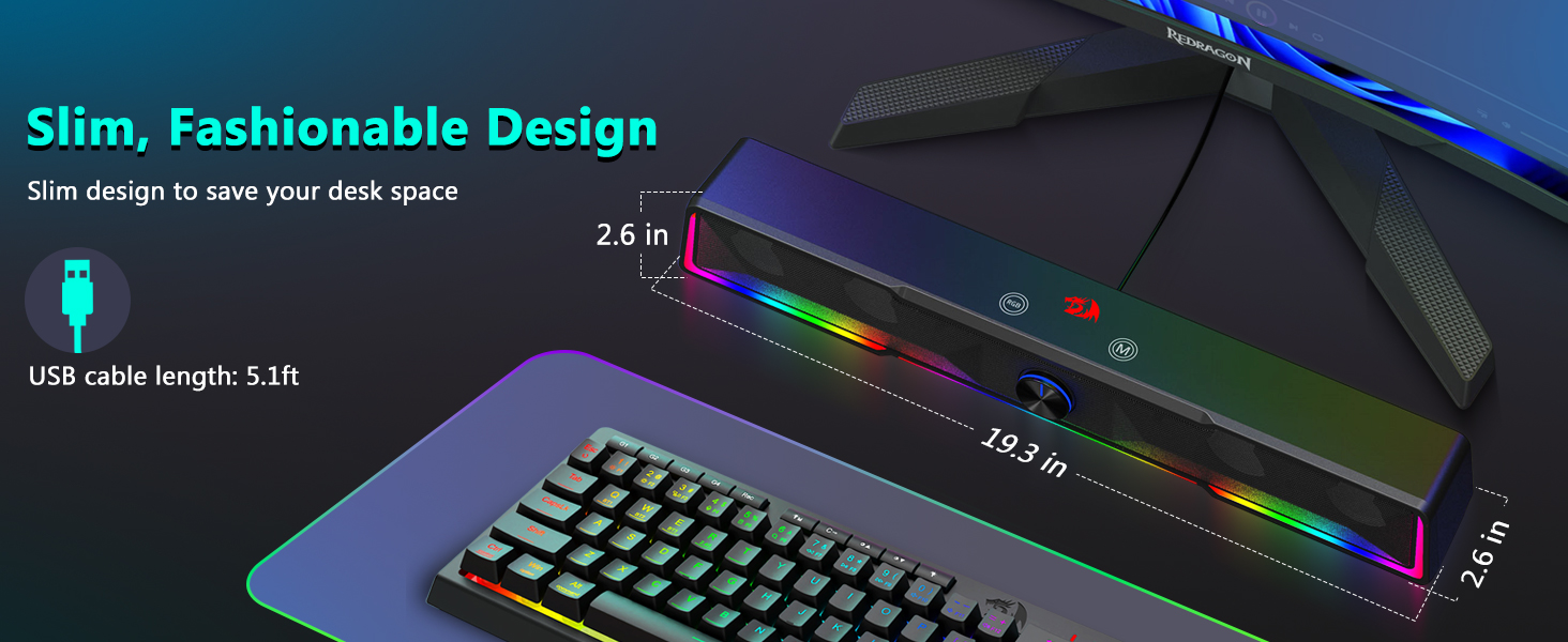 Zajmująca mało miejsca konstrukcja soundbara W przeciwieństwie do tradycyjnych głośników, które zajmują duże obszary po obu stronach monitora, głośnik komputerowy Black GS516 Bluetooth/USB z przewodowym połączeniem Soundbar z pokrętłem głośności ma smukłą konstrukcję soundbara, która wygodnie mieści się pod większością ekranów komputerów. Ta kompaktowa konstrukcja pomaga utrzymać czyste i zorganizowane środowisko na biurku, jednocześnie zapewniając bogaty i wciągający dźwięk.