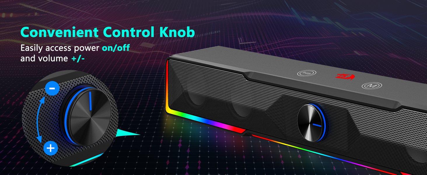 Płynna regulacja pokrętłem głośności Zintegrowane pokrętło głośności to jedna z najwygodniejszych funkcji głośnika komputerowego Black GS516 Bluetooth/USB z połączeniem przewodowym Soundbar Pokrętło głośności. Zamiast regulować poziom dźwięku za pomocą ustawień systemowych, użytkownicy mogą po prostu obrócić pokrętło, aby natychmiast zwiększyć lub zmniejszyć głośność. Ta dotykowa kontrola zwiększa użyteczność podczas sesji gier, odtwarzania muzyki i wideokonferencji.