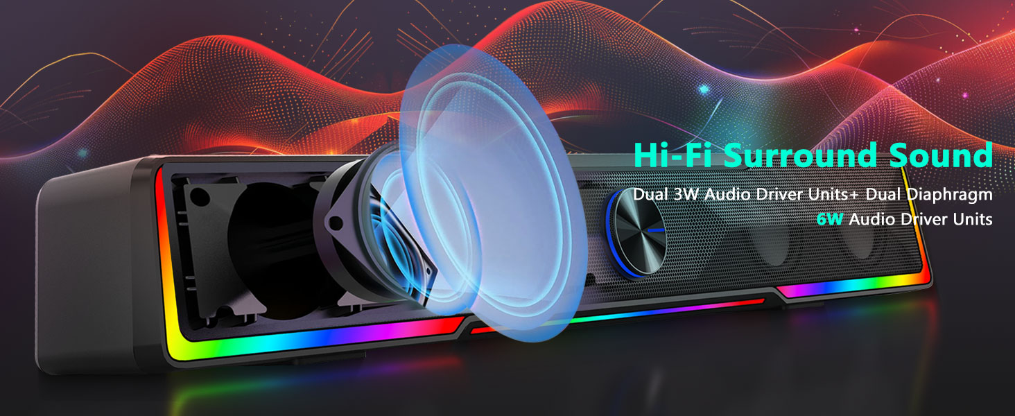 Wysokiej jakości dźwięk stereo Wyposażony w potężne sterowniki stereo, głośnik komputerowy Black GS516 Bluetooth/USB z przewodowym połączeniem Soundbar z pokrętłem głośności zapewnia zrównoważony dźwięk z wyraźnym wokalem, szczegółową średnicą i wzmocnioną charakterystyką basów. Głośnik został zaprojektowany do odtwarzania wciągającego dźwięku dla wielu rodzajów treści, w tym filmów, gier, podcastów i muzyki.