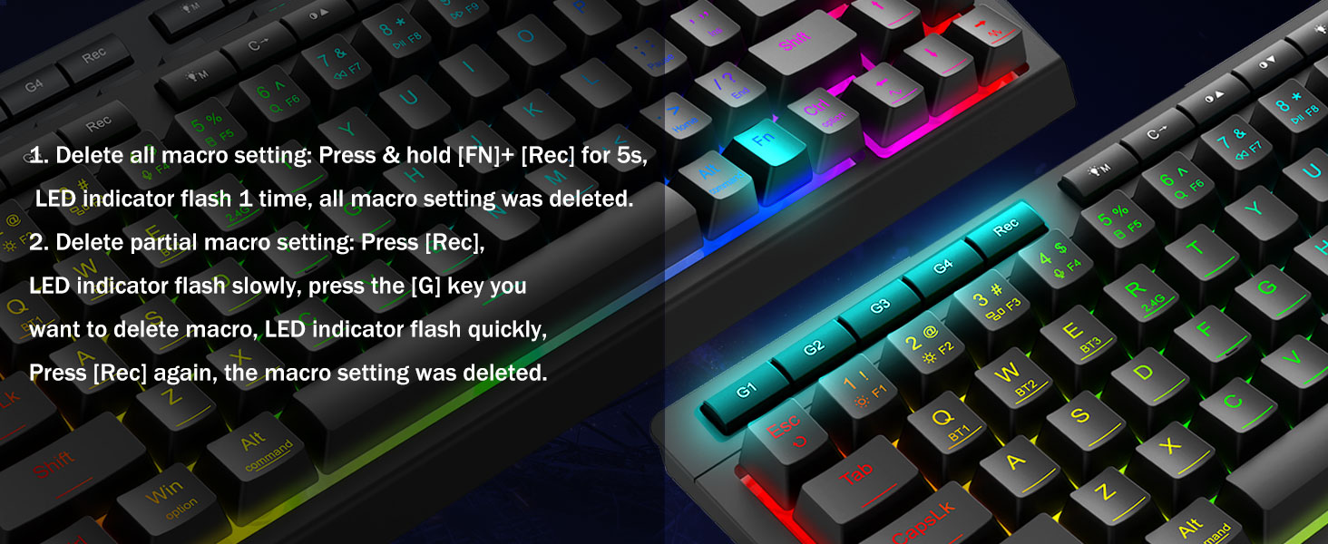 Konfigurowalne makra, łatwa kontrola -Uwolnij 16,8 miliona kolorów RGB dzięki 8 wstępnie ustawionym trybom (Rainbow Wave, Reactive Typing) + 6 profilom DIY. Dostosuj jasność od żywego blasku do trybu ukrycia — idealny do nocnych gier lub zastosowań biurowych.