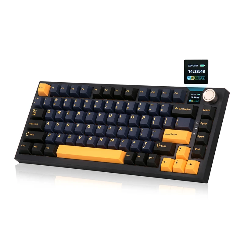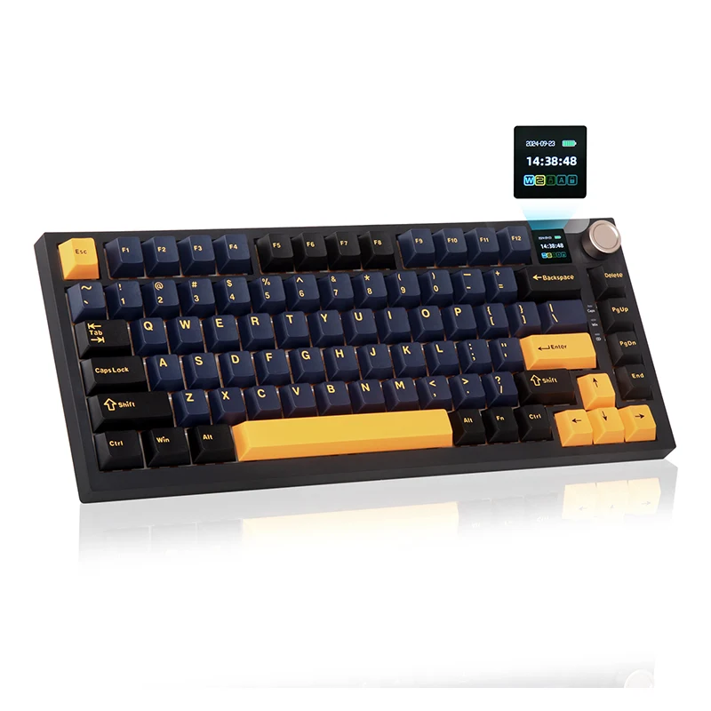 【Ekran multimedialny jasny kolor】- Ten ekran wyświetlania Multimedia Multimedia Gaming Multimedia, projekt w prawym górnym rogu klawiatury umożliwia wizualizację w niestandardowym obrazie GIF, blokowaniu czapek, trybie połączenia, Win/Mac, systemu, podświetleniu jasności/prędkości, trybu RGB/koloru, objętości i języku i więcej