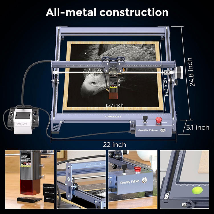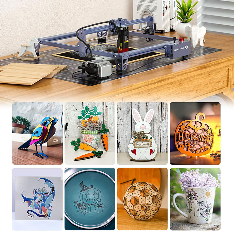 Grawer laserowy Wycinarka laserowa Falcon Pro 10 W, Wycinarka laserowa Falcon Pro 10 W do spersonalizowanych prezentów, Maszyna do grawerowania laserowego o wysokiej dokładności ze wspomaganiem pneumatycznym, Maszyna CNC i grawer laserowy do drewna i metalu, papieru, akrylu, szkła