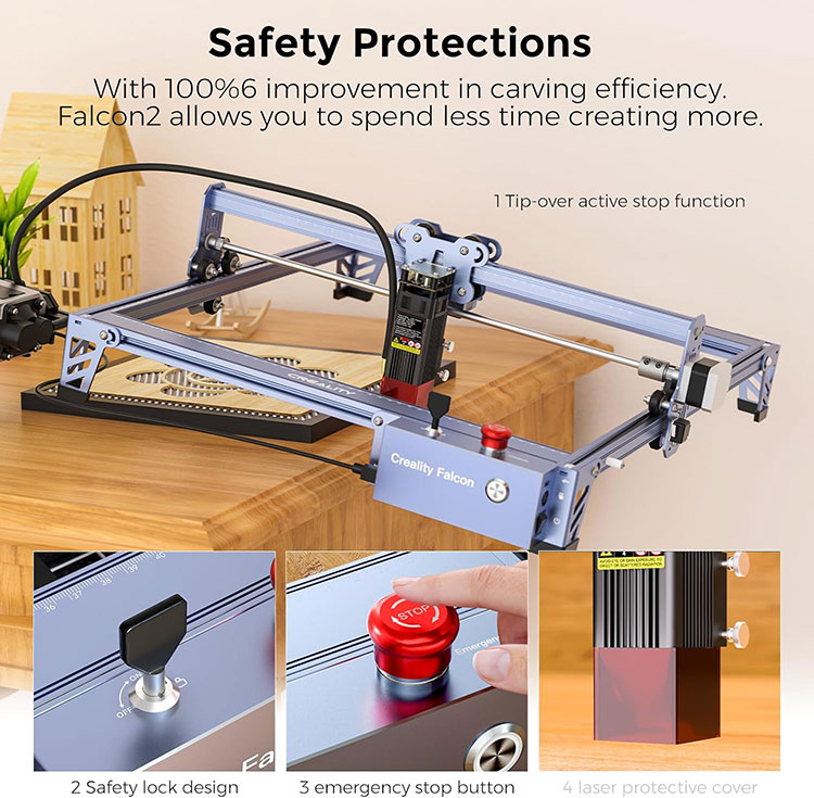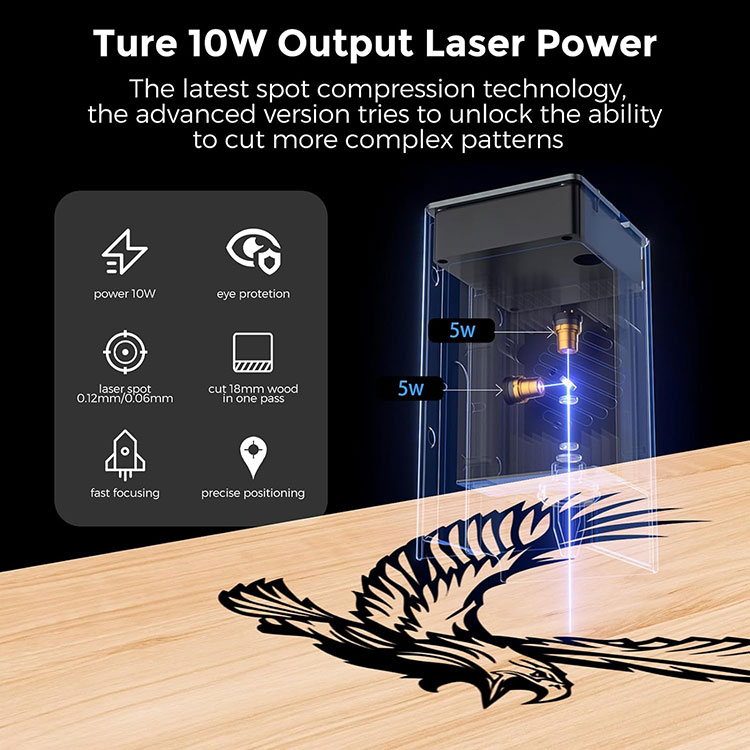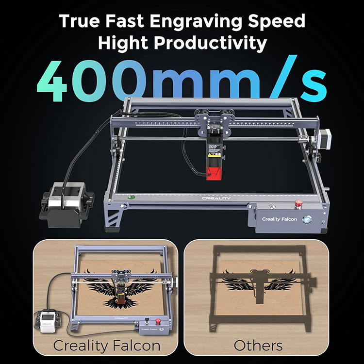 · 【Nowa aktualizacja i potężna maszyna】Grawer laserowy Creality Falcon Pro 10W ma moc maszyny 72W i moc wyjściową 10W. Z prędkością do 10000 mm/m może w jednym przejściu przeciąć płytę lipową o grubości 5 mm, deskę drewnianą o grubości 12 mm lub czarną płytę akrylową o grubości 3 mm. Jest również wyposażony w wspomaganie powietrzne, które pomoże Ci z łatwością wykonać zadania rzeźbienia. Klasa lasera: klasa 4