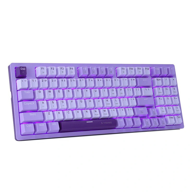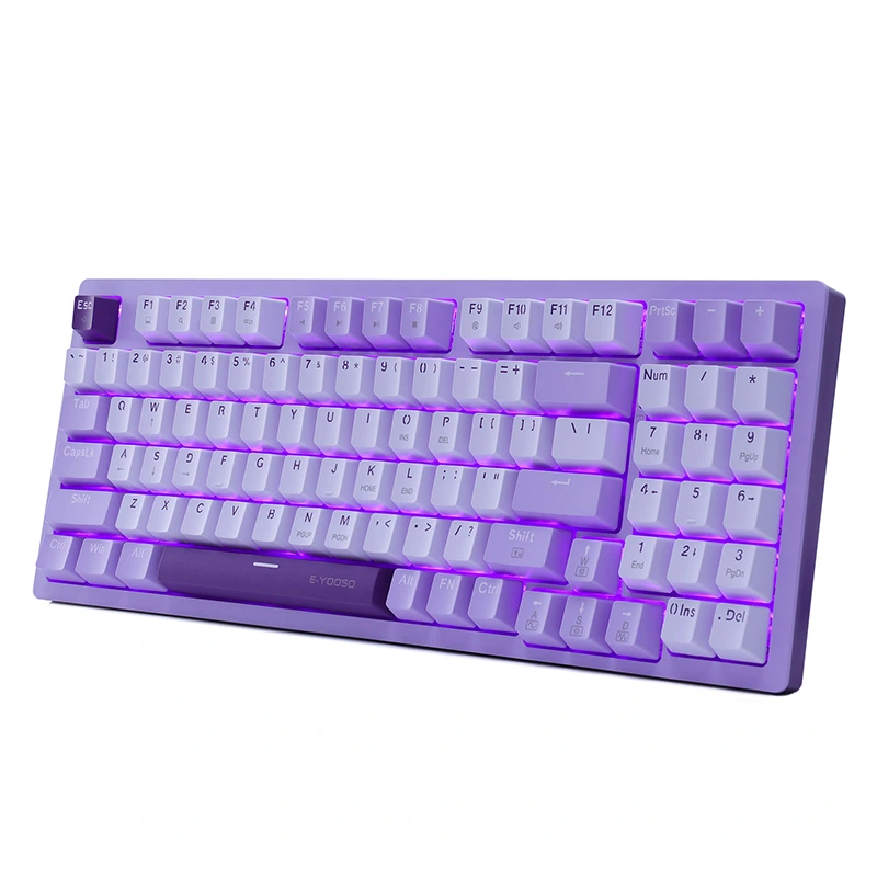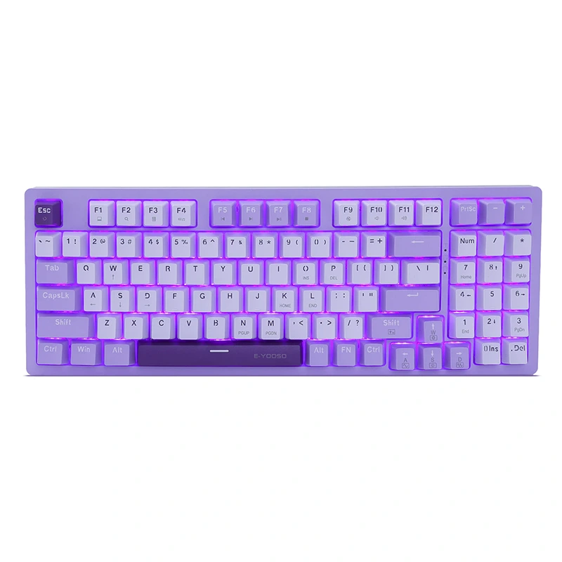 ❤ Fioletowy podświetlany diodami LED ▶ Zaprogramowanych 10 trybów oświetlenia, 5 poziomów jasności podświetlenia, prędkość oddychania. Precyzyjnie zaprojektowane, podwójne klawisze nigdy nie blakną. Światło może być wyłączone.