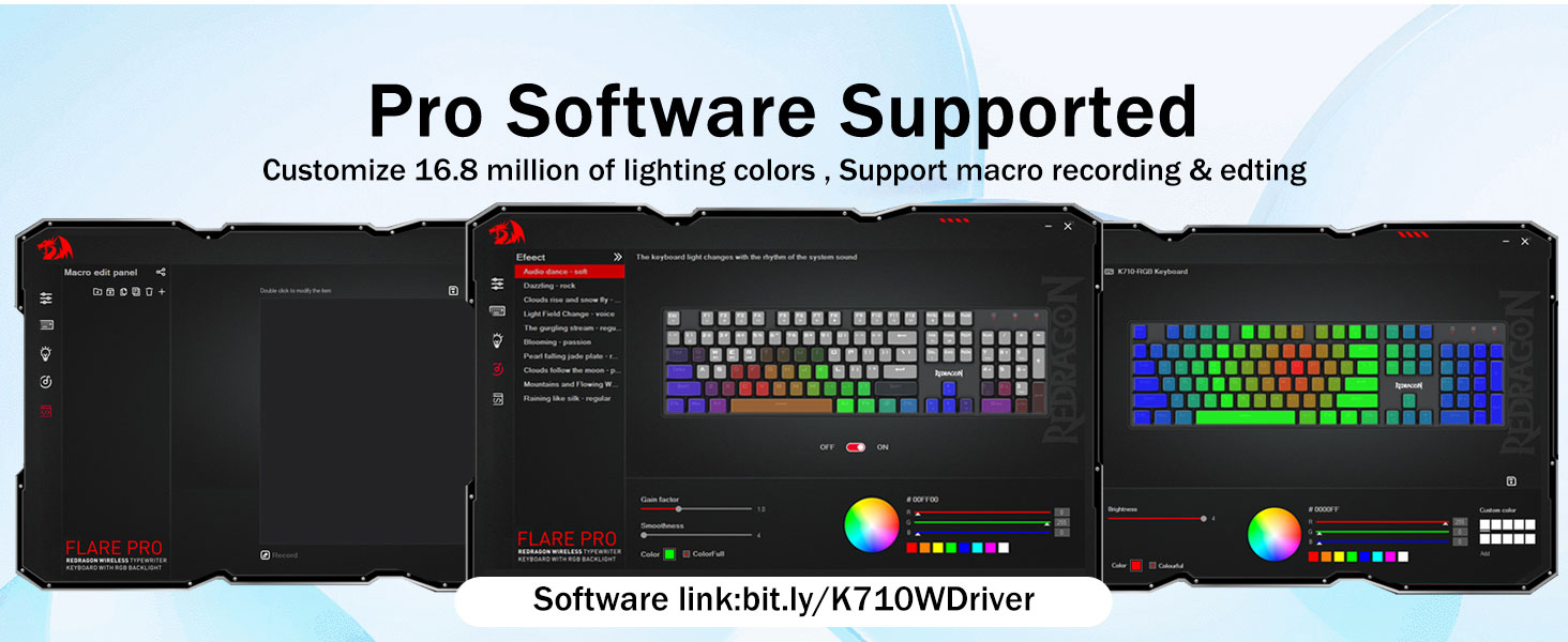 𝗣𝗿𝗼 𝗦𝗼𝗳𝘁𝘄𝗮𝗿𝗲 𝗦𝘂𝗽𝗽𝗼𝗿𝘁𝗲𝗱- Rozszerz swoje możliwości, korzystając z dostępnego oprogramowania, aby zaprojektować własne nowe tryby i efekty. Makra z różnymi skrótami klawiszowymi lub skrótami dla wydajniejszej pracy i grania. Link do oprogramowania: bit.ly/K710WDriver.